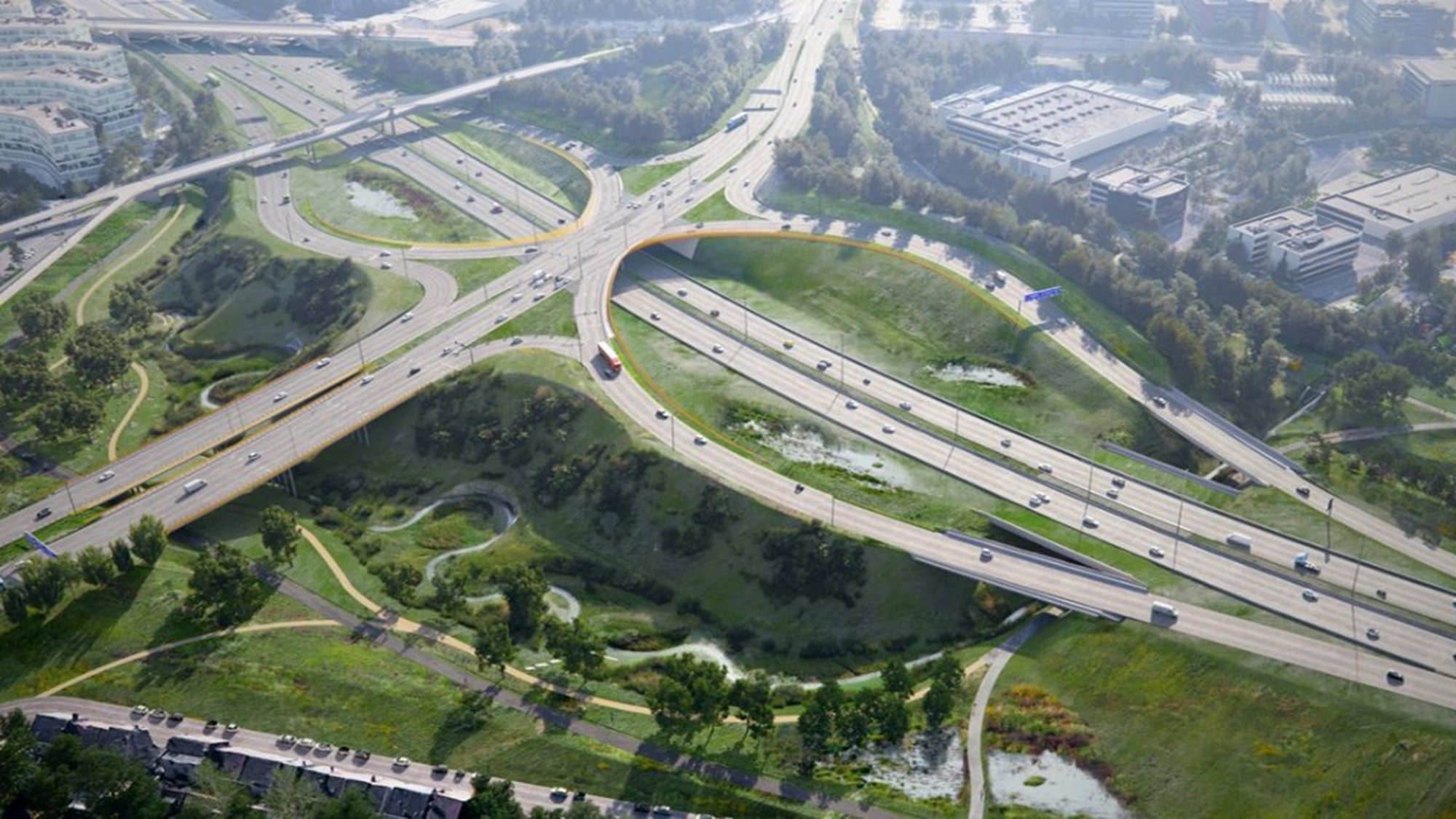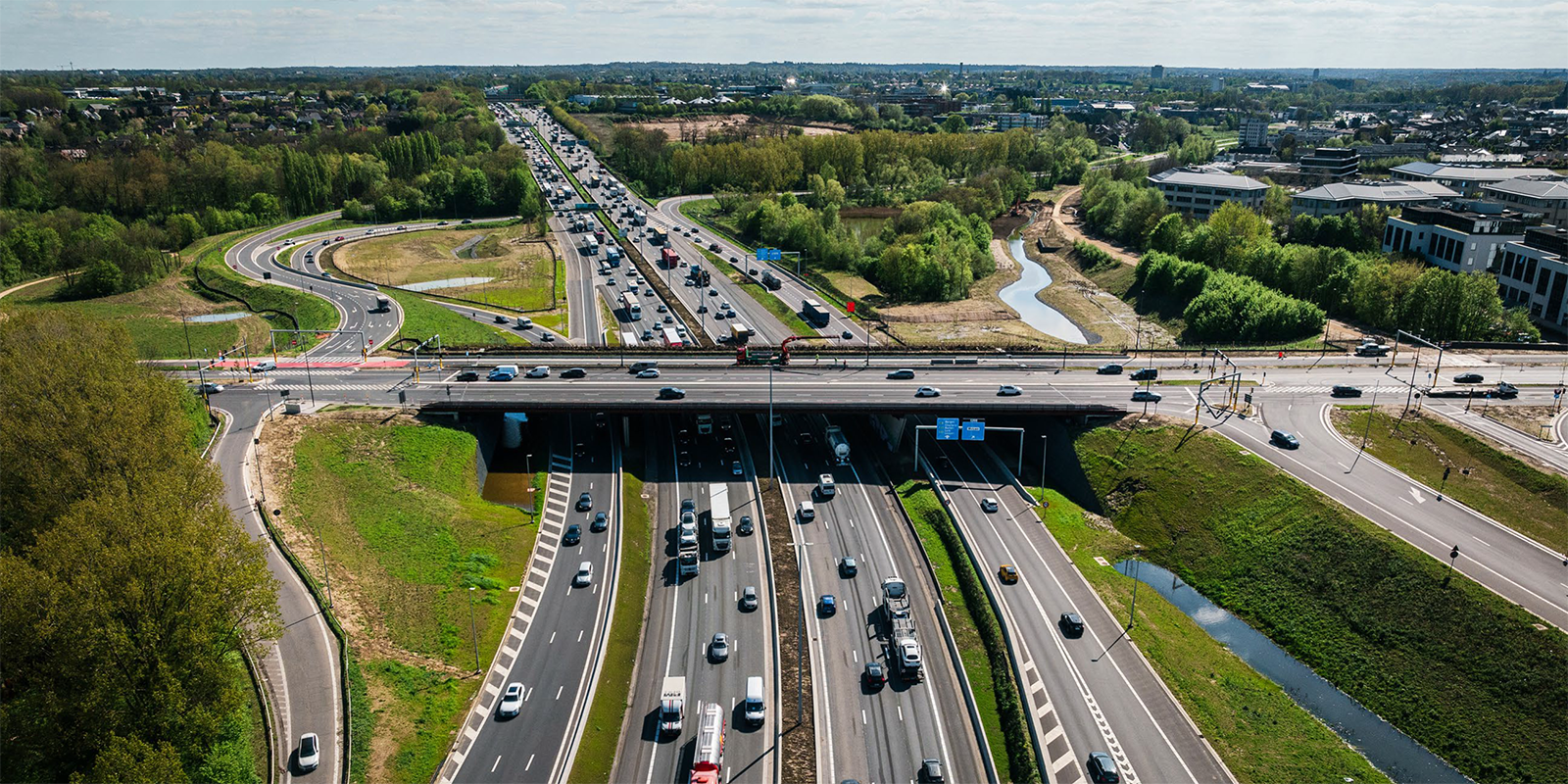 Hoe pak je een van de drukste verkeersaders rond Brussel aan en houd je tegelijk de toegang tot luchthaven, stad en bedrijventerreinen zorgeloos? Met een Single Point Interchange: een compact en inventiefaansluitingscomplex dat de oude wisselaar R0 × A201 vervangt. Alle op- en afritten komen samen op één plaats. Een conflictvrije verkeerslichtenregeling zorgt voor een vlottere, veiligere en efficiëntere doorstroming. Het compacte ontwerp creëert ruimte voor groen, waterbuffers en zachte mobiliteit.
