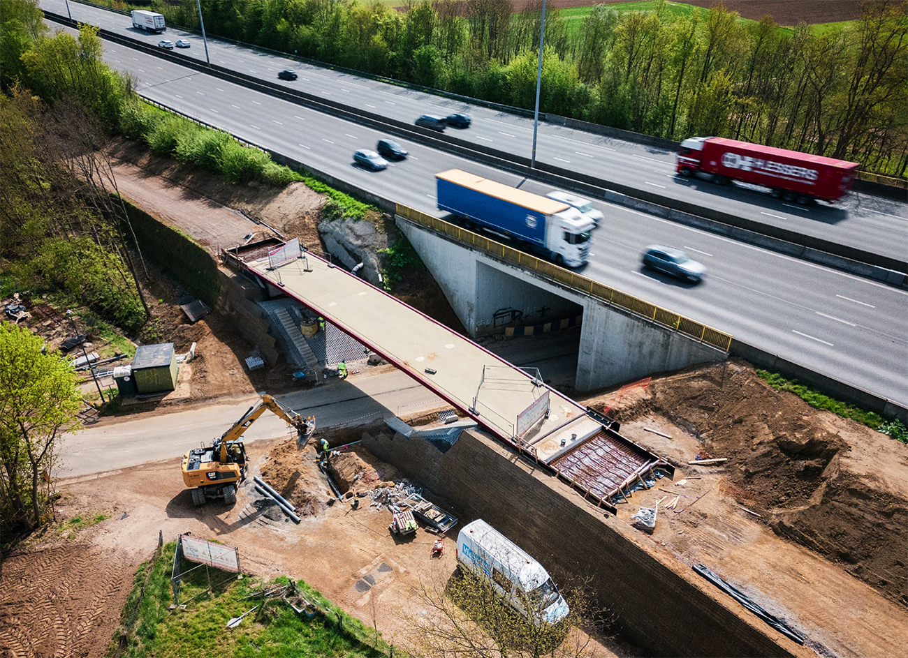 Langs de E40, op de fietssnelweg F203 tussen Brussel en Bertem, hebben fietsers een nieuwe veilige, conflictvrije verbinding. Comfortabel, vlot en midden in het groen. Kers op de taart is een indrukwekkende houten fietsbrug die deel uitmaakt van een netwerk van meer dan 100 kilometer nieuwe fietsinfrastructuur rond Brussel. De houten liggers met betonnen rijdek zijn niet alleen mooi om naar te kijken, maar ook functioneel: het beton beschermt het hout tegen waterinsijpeling en verlengt zo de levensduur.